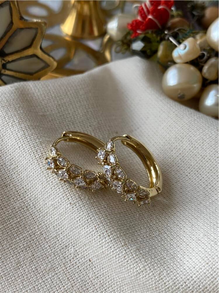 VIP 14K Şekilli Taşlı Halka Küpe (31844)