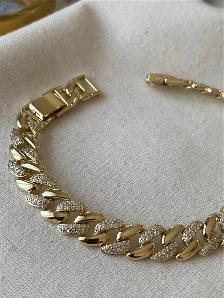 Moda LUKKA - VIP 14K Taş Detaylı Yatay Zincir Bileklik