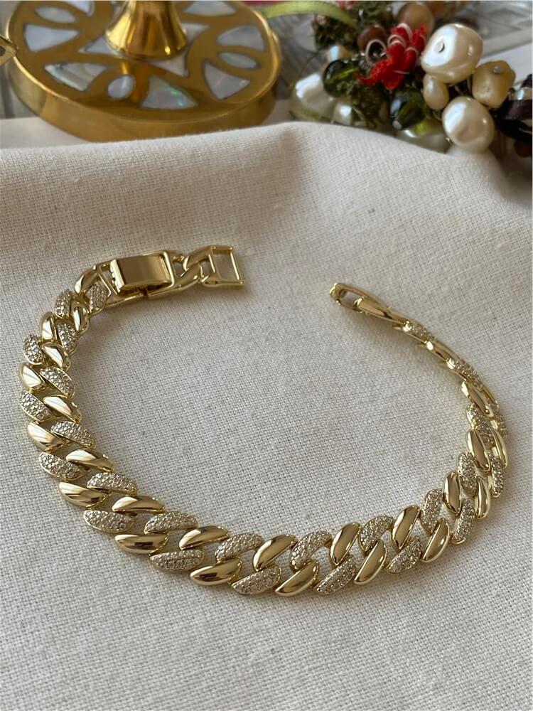 VIP 14K Taş Detaylı Yatay Zincir Bileklik (31363)