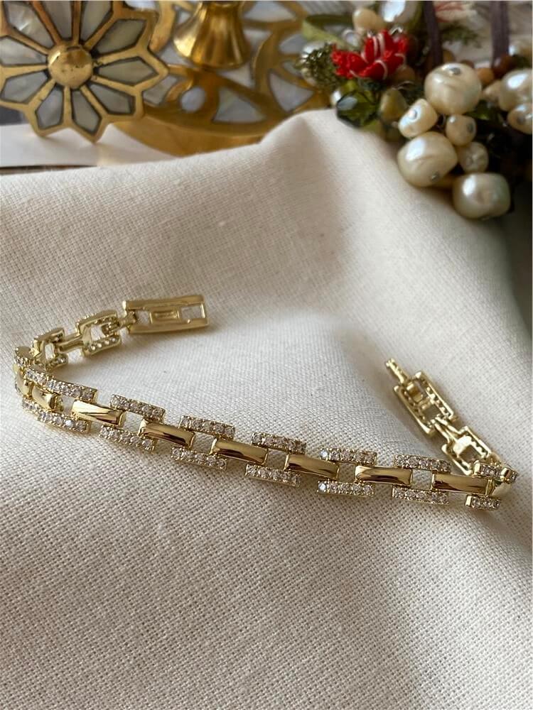 VIP 14K Taşlı Bağlı Kareler Bileklik (31787)