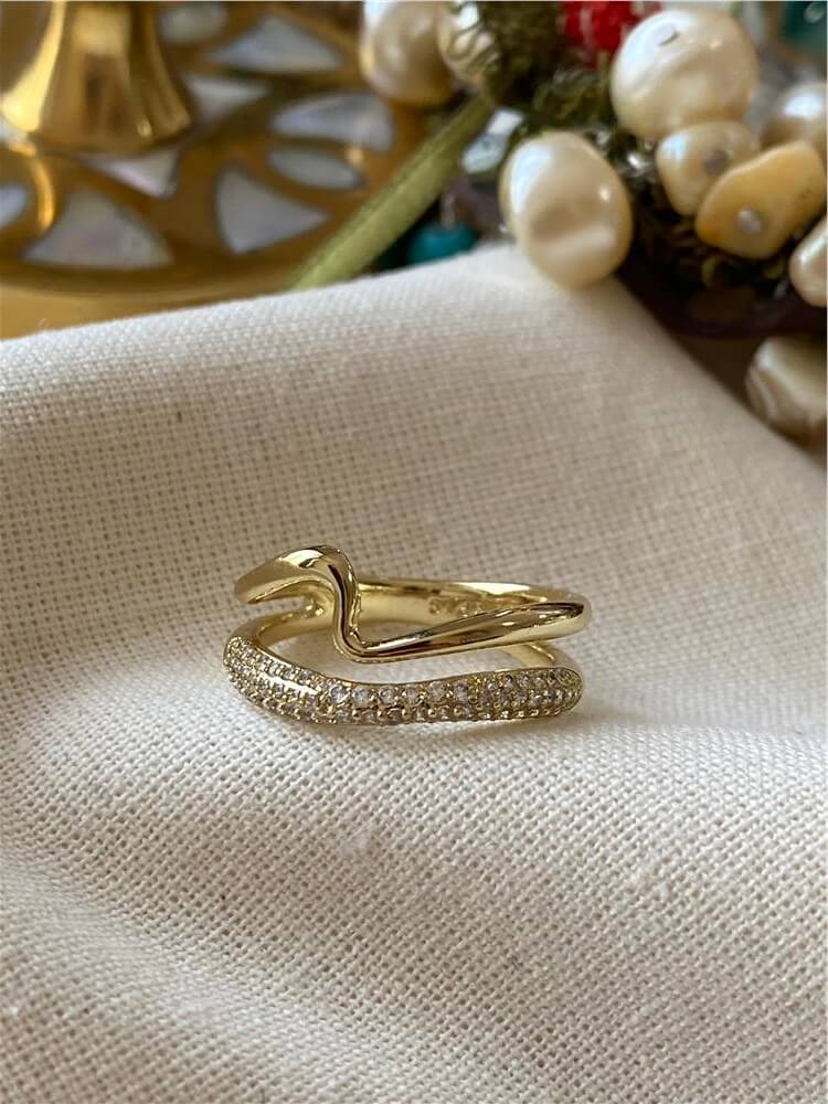 Moda LUKKA - VIP 14K Taşlı Çift Sıra Wave Yüzük