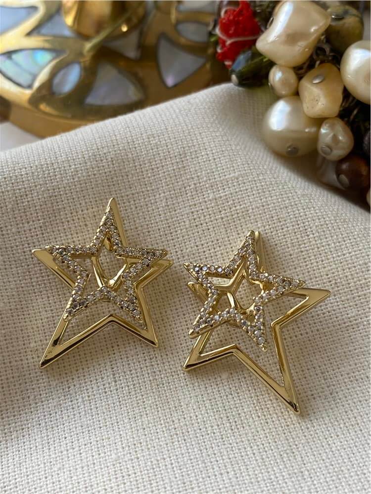 VIP 14K Taşlı Çift Yıldız Küpe (31430)