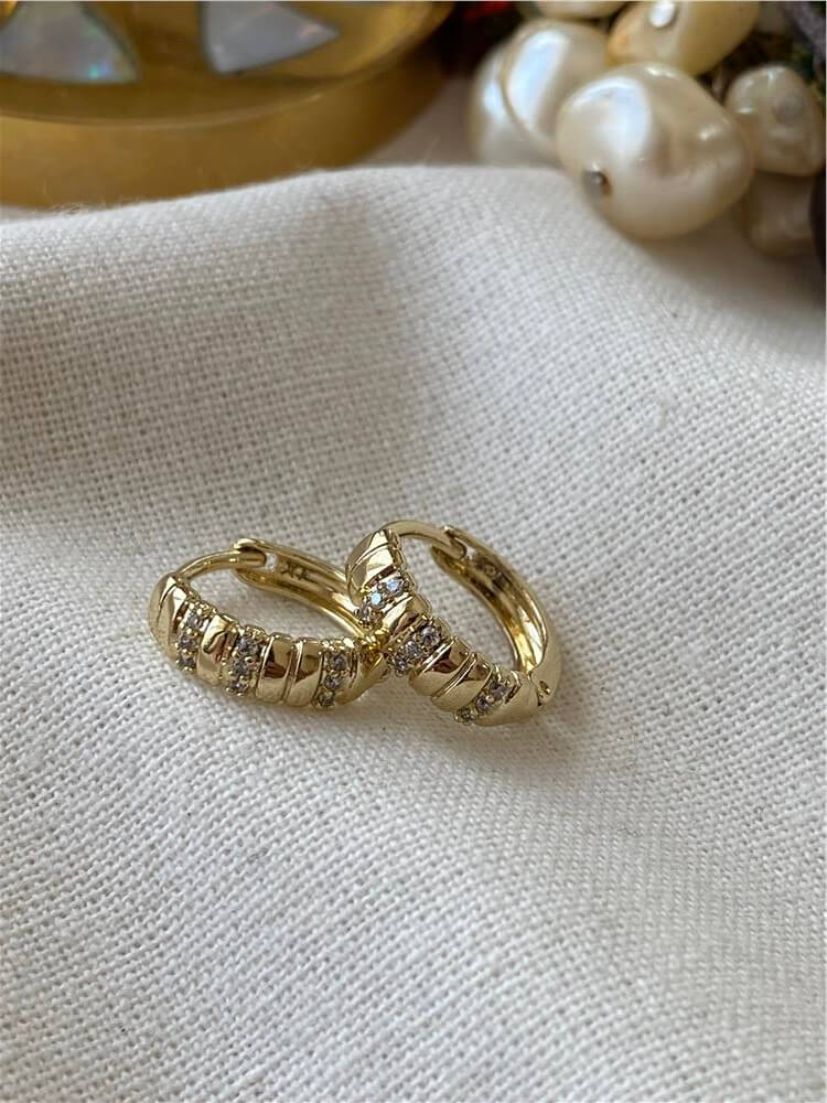 VIP 14K Taşlı Çizgi Desenli Mini Halka Küpe (31339)