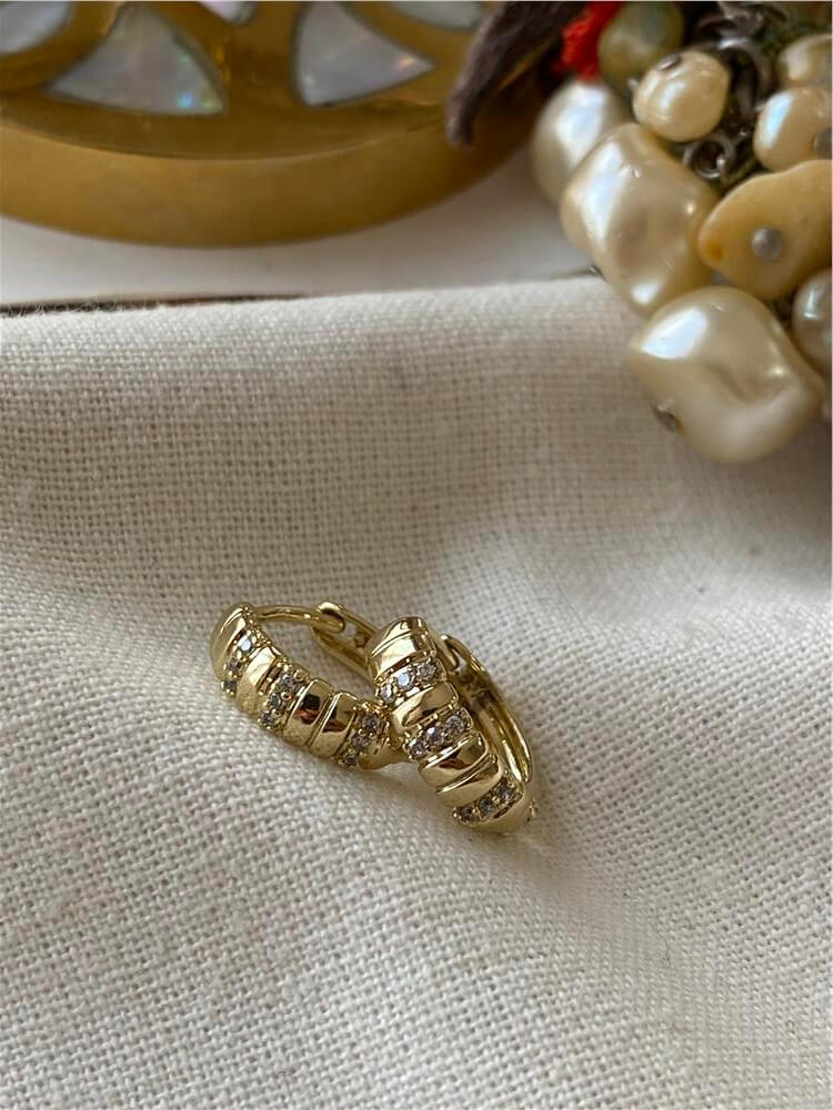 Moda LUKKA - VIP 14K Taşlı Çizgi Desenli Mini Halka Küpe