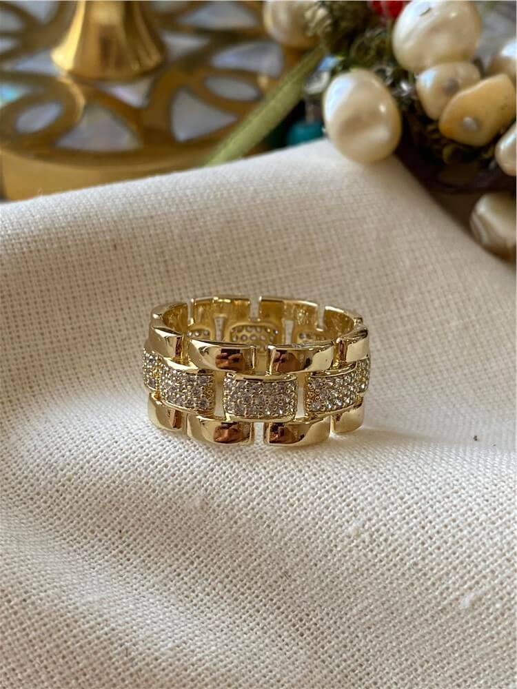 Moda LUKKA - VIP 14K Taşlı Geniş Kare Zincir Yüzük