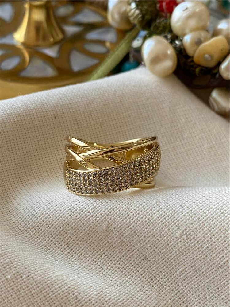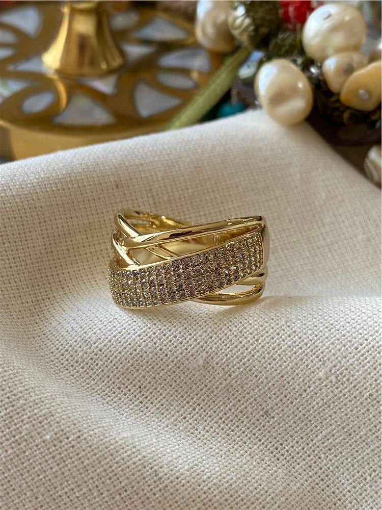 Moda LUKKA - VIP 14K Taşlı Geniş Sarmal Yüzük