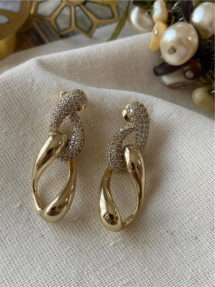 VIP 14K Taşlı İkili Burma Model Küpe (31410)
