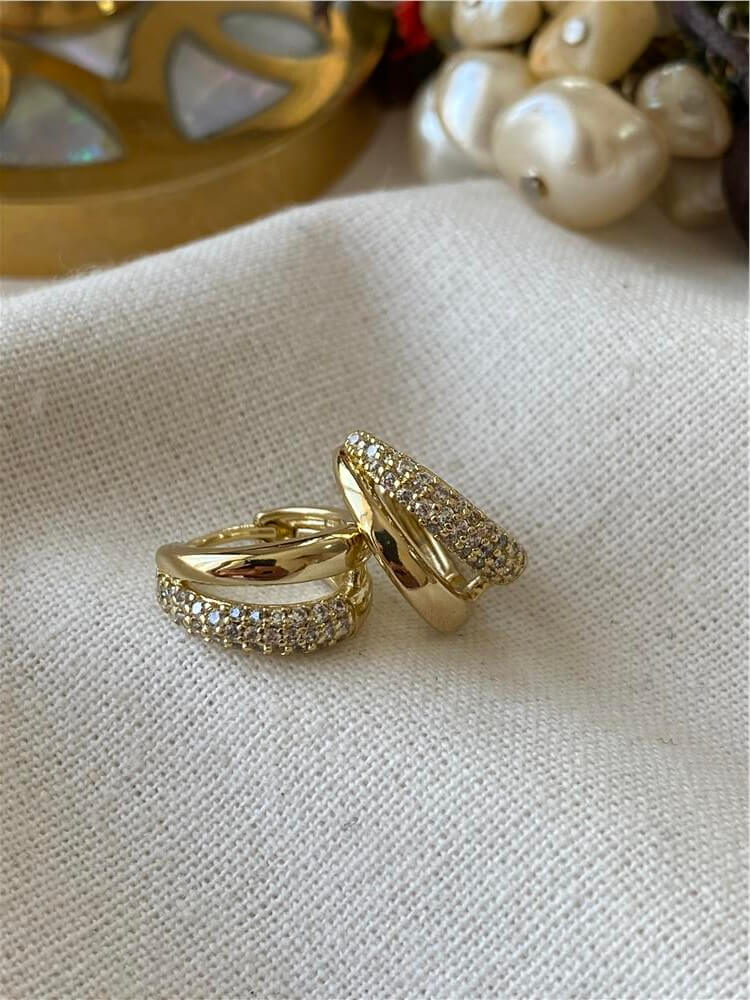 Moda LUKKA - VIP 14K Taşlı İkili Kaburga Model Küpe