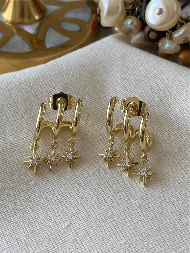 Moda LUKKA - VIP 14K Taşlı Kutup Yıldızı Sallantılı Kaburga Küpe