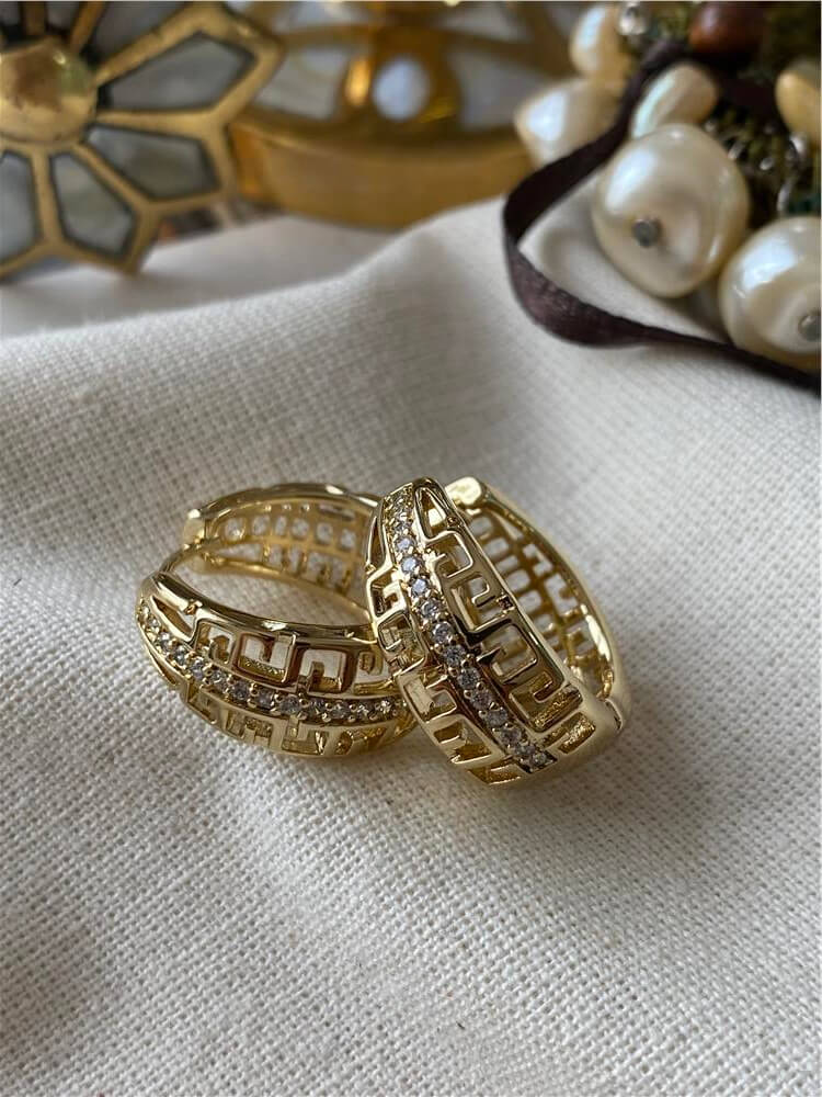 Moda LUKKA - VIP 14K Taşlı Labirent Desenli Bombe Küpe