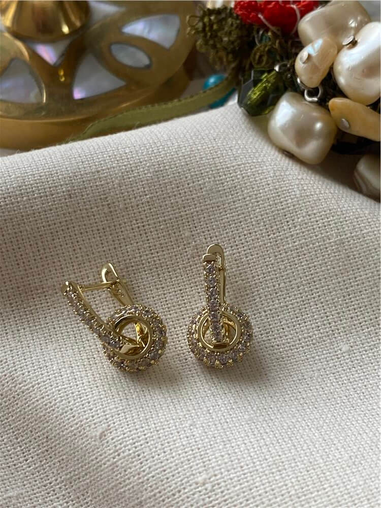 VIP 14K Taşlı Mini Halka Detaylı Küpe (31372)