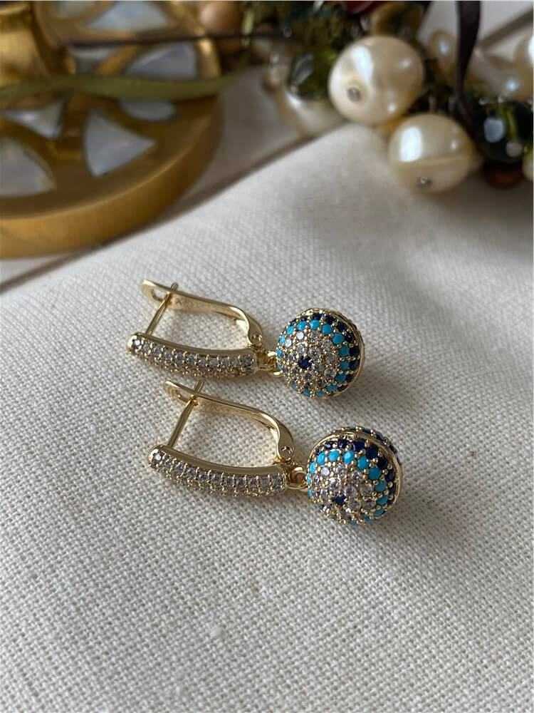 VIP 14K Taşlı Nazar Göz Sallantılı Küpe (31419)