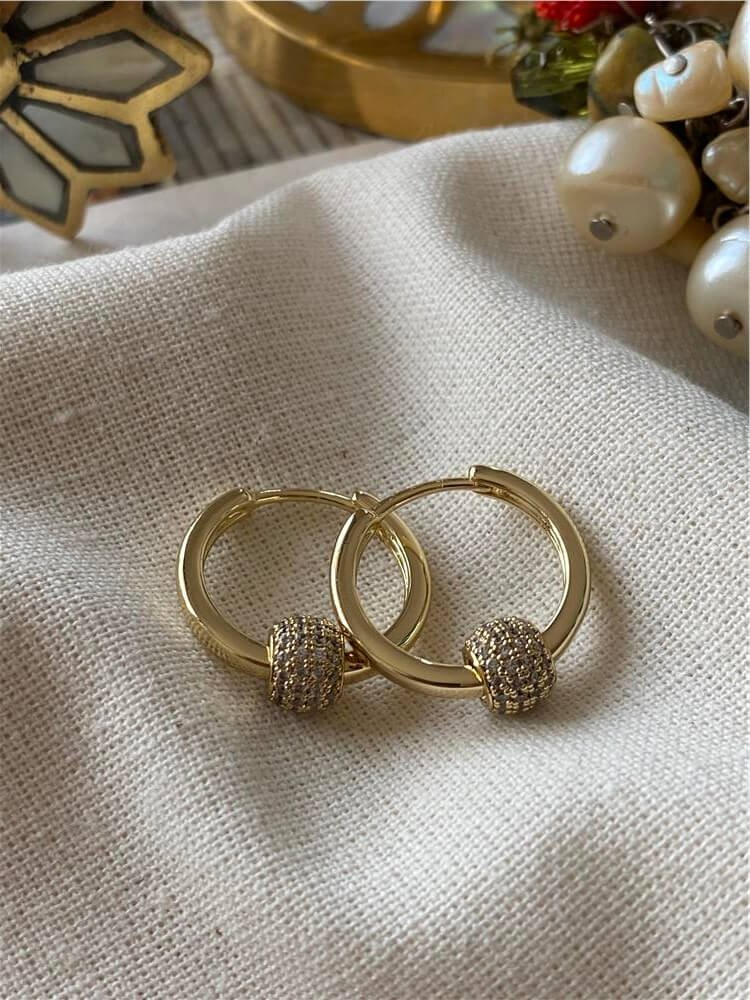Moda LUKKA - VIP 14K Taşlı Silindir Detaylı Halka Küpe