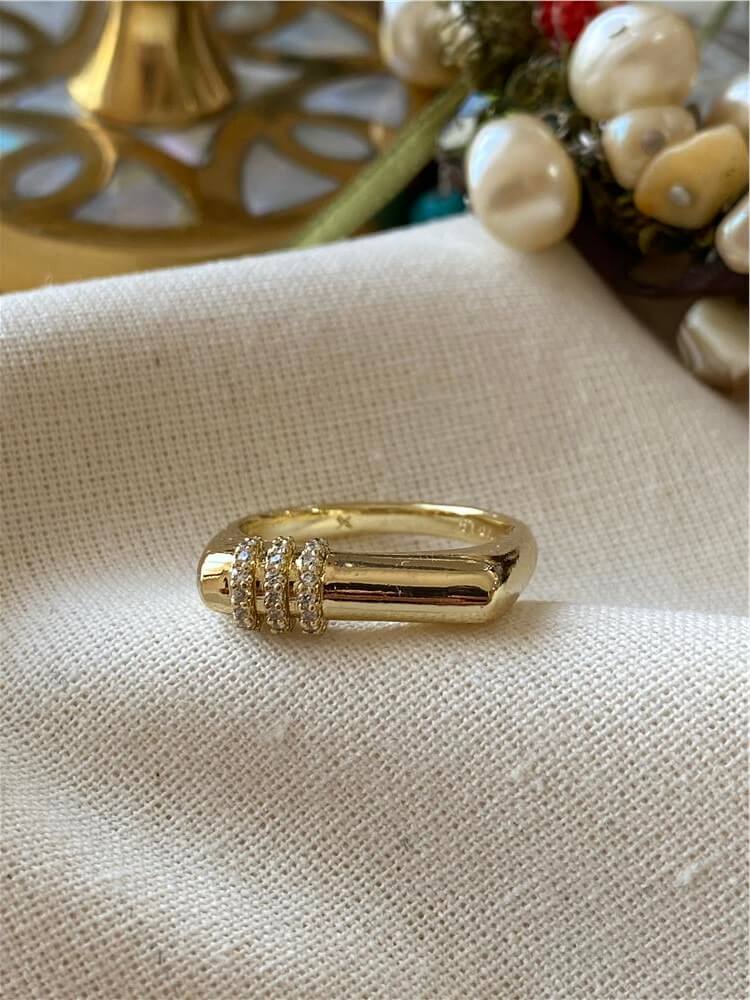 Moda LUKKA - VIP 14K Üç Sıra Taşlı Küt Yüzük