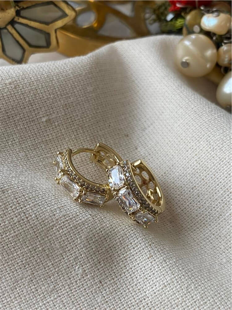 Moda LUKKA - VIP 14K Üç Taşlı Halka Küpe