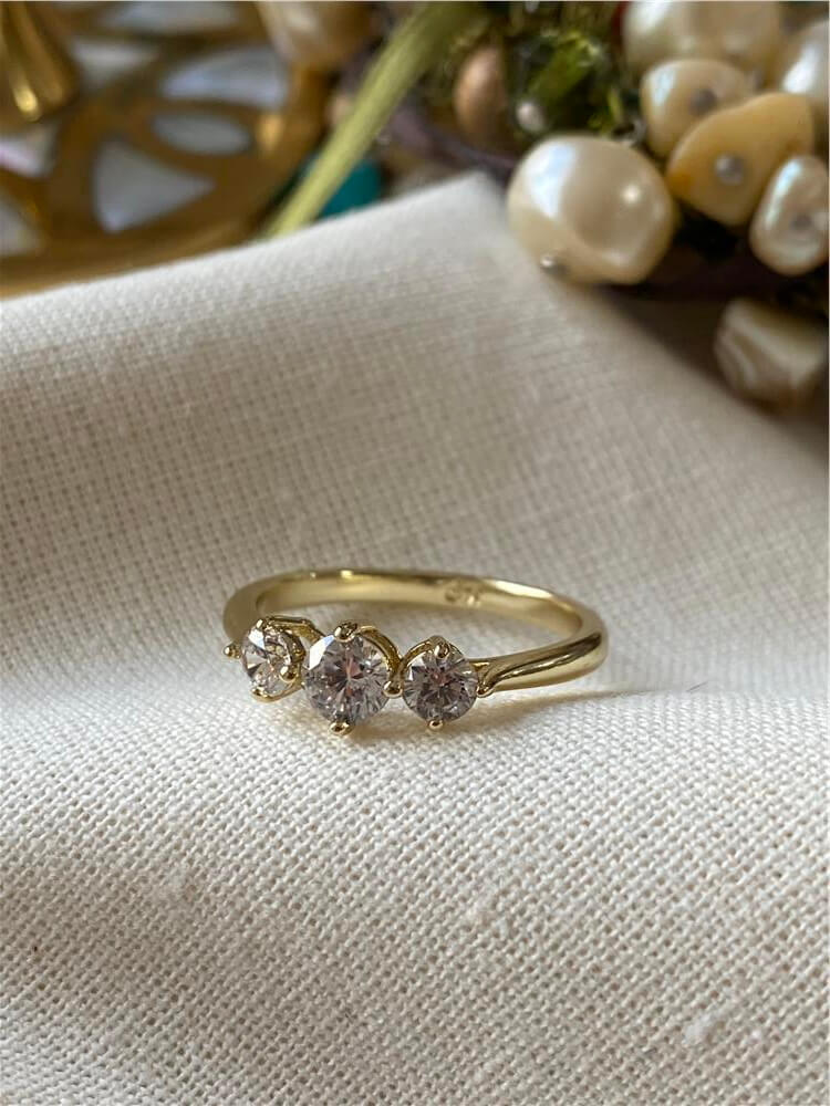 Moda LUKKA - VIP 14K Üçlü Tektaş Yüzük