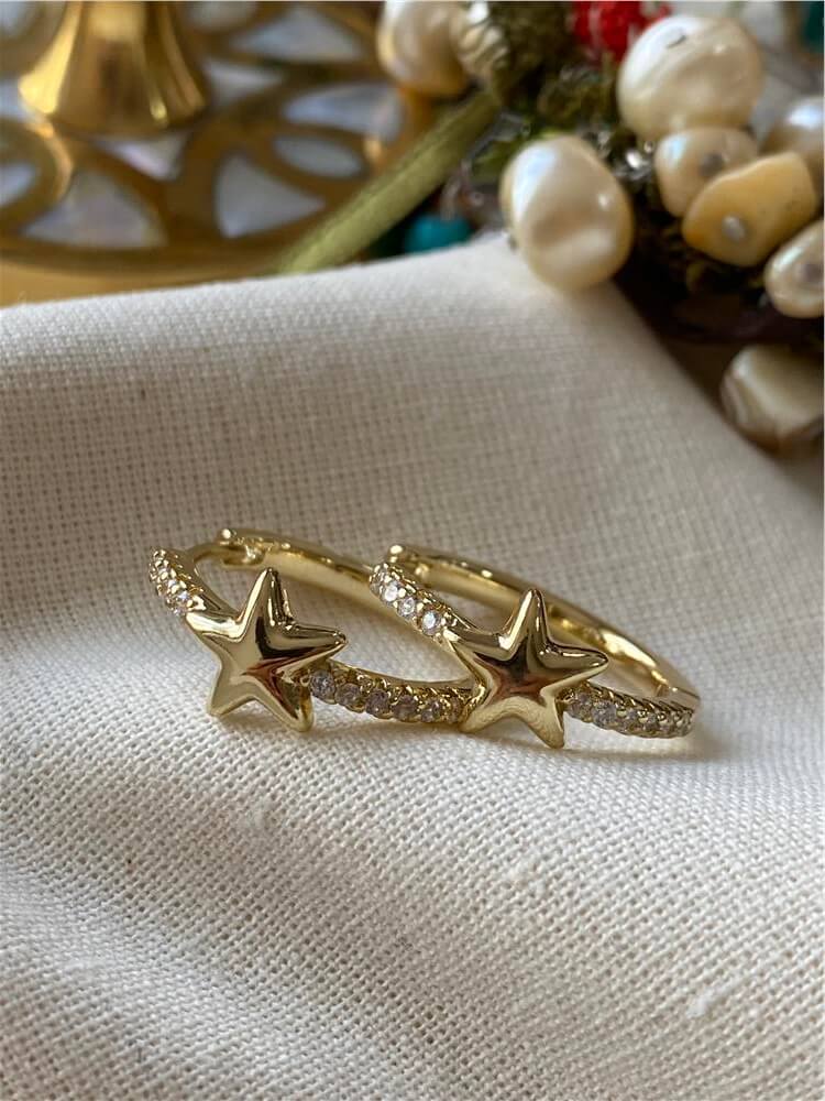 Moda LUKKA - VIP 14K Yıldız Detaylı Taşlı Halka Küpe