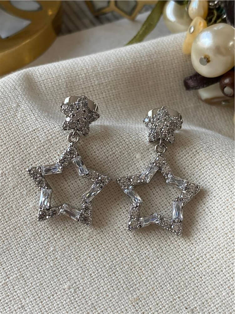 VIP Silver Kesme Taşlı Yıldız Sallantılı Küpe (31420)