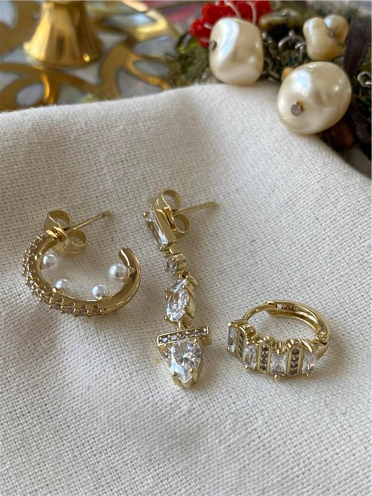 VIP Üçlü 14K Sallantılı Mix Model Küpe Seti (31317)