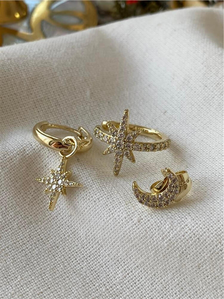 Moda LUKKA - VIP Üçlü 14K Taşlı Ay ve Yıldız Küpe Seti