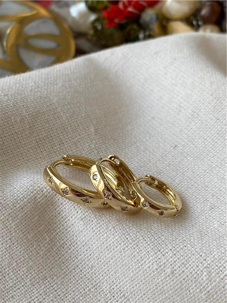 VIP Üçlü 14K Taşlı Yıldız Desenli Halka Küpe Seti (31322)