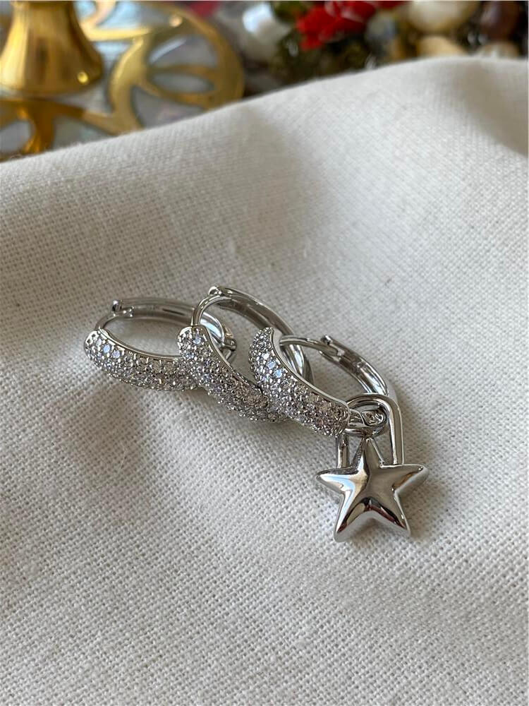 Moda LUKKA - VIP Üçlü Silver Yıldız Sallantılı Taşlı Bombe Küpe Seti