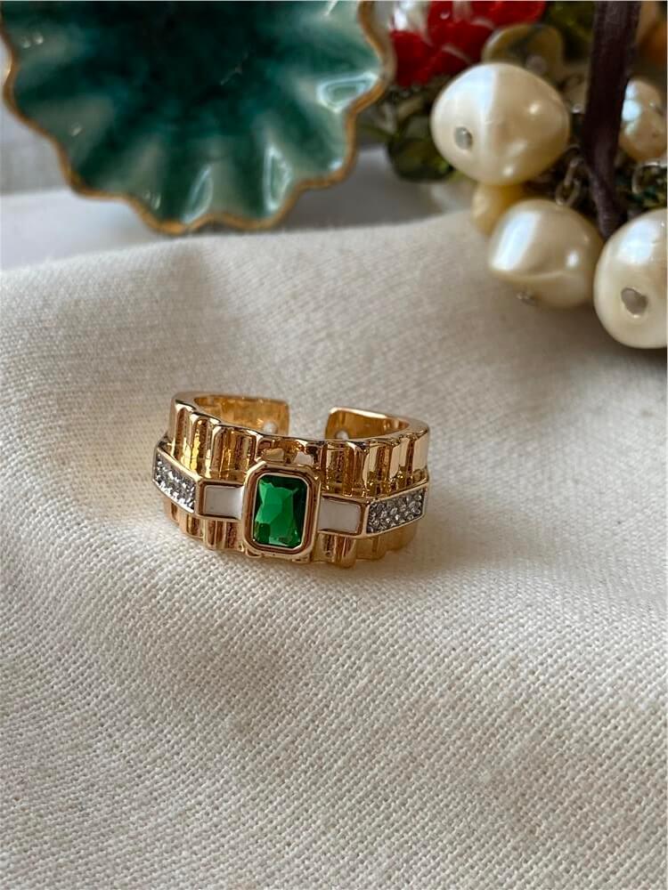 Moda LUKKA - Yeşil Taşlı Crown Yüzük